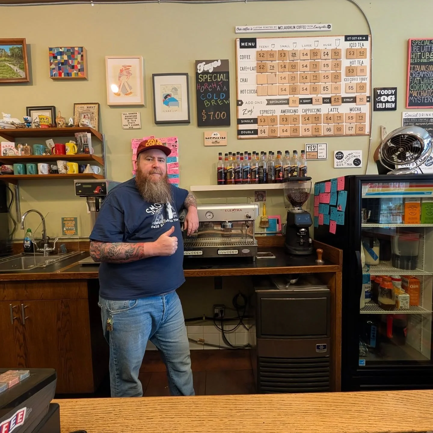 Neighborhood coffee shop connecting people through art, movies and conversation.